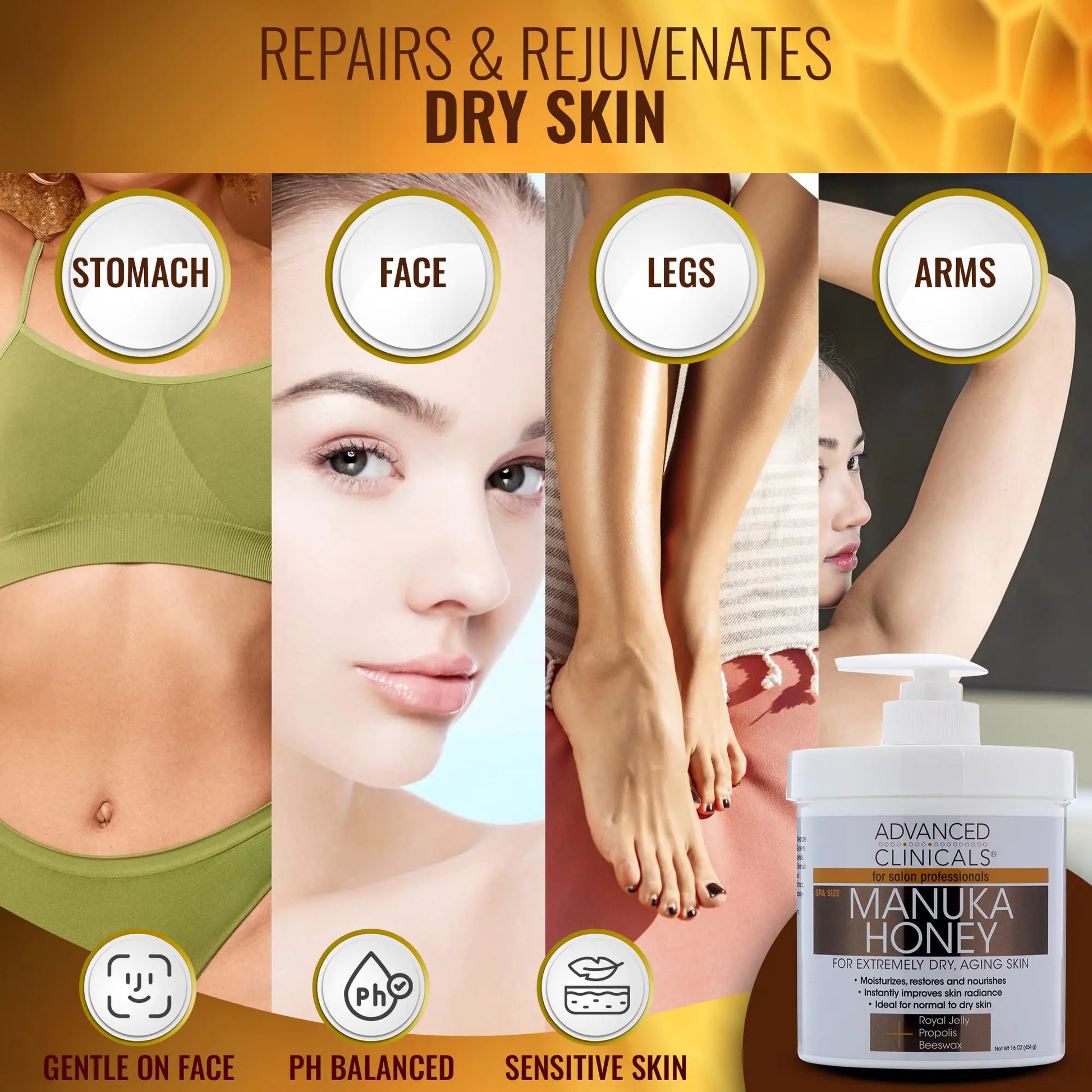Advanced Clinicals Manuka Honey Cream W/Collagen Face Moisturizer & Body Butter Lotion For Dry Skin | Intense Firming & Hydrating Miracle Balm Skin Care Moisturizing Lotion For Women & Men | 2-Pack