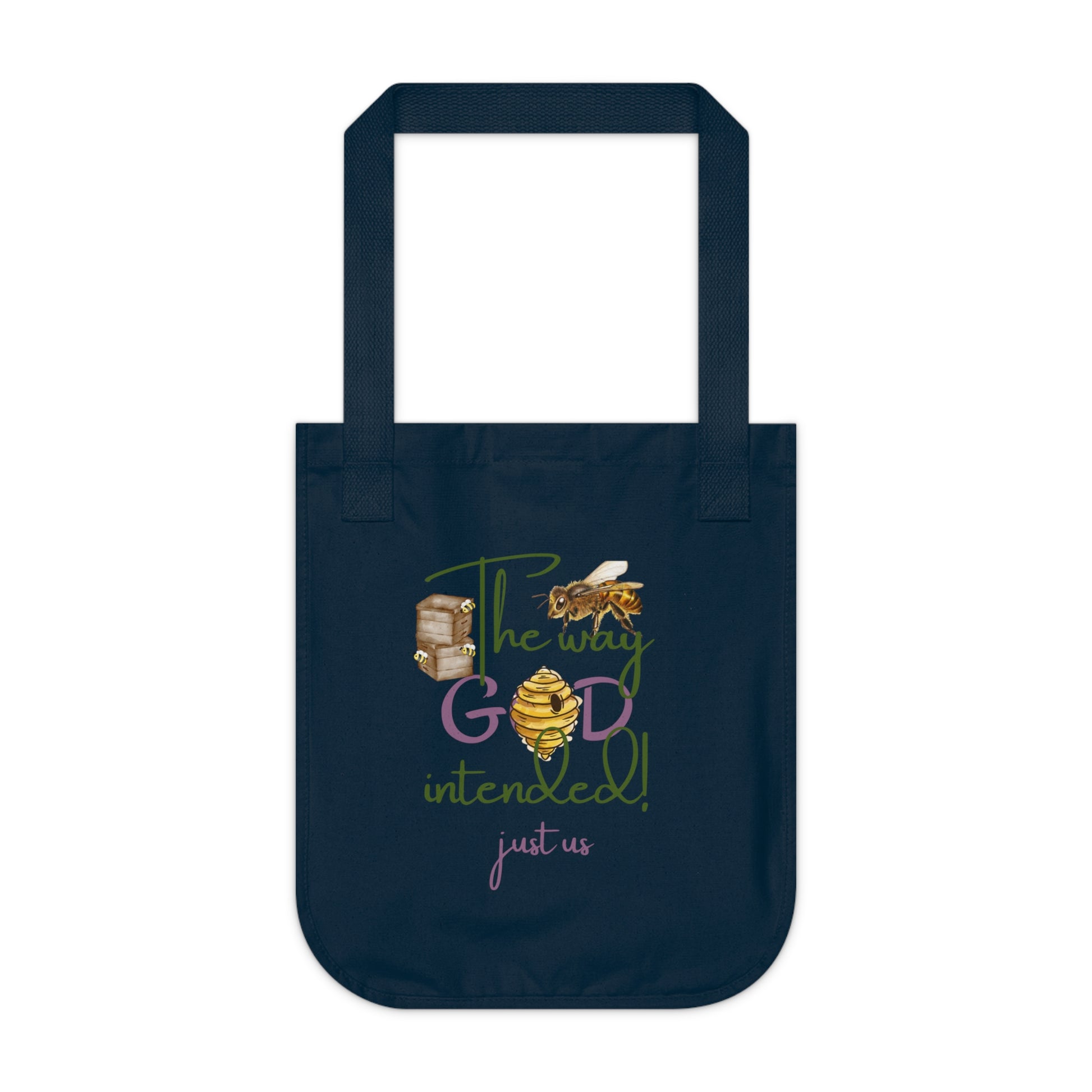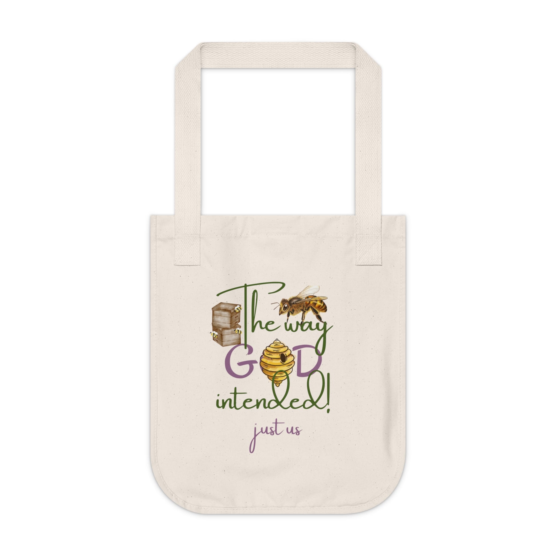 Organic Canvas Bee Tote Bag- Personalizable - Just Us, “The way GOD intended” - Eco-Friendly Floral Shopper for Everyday Use