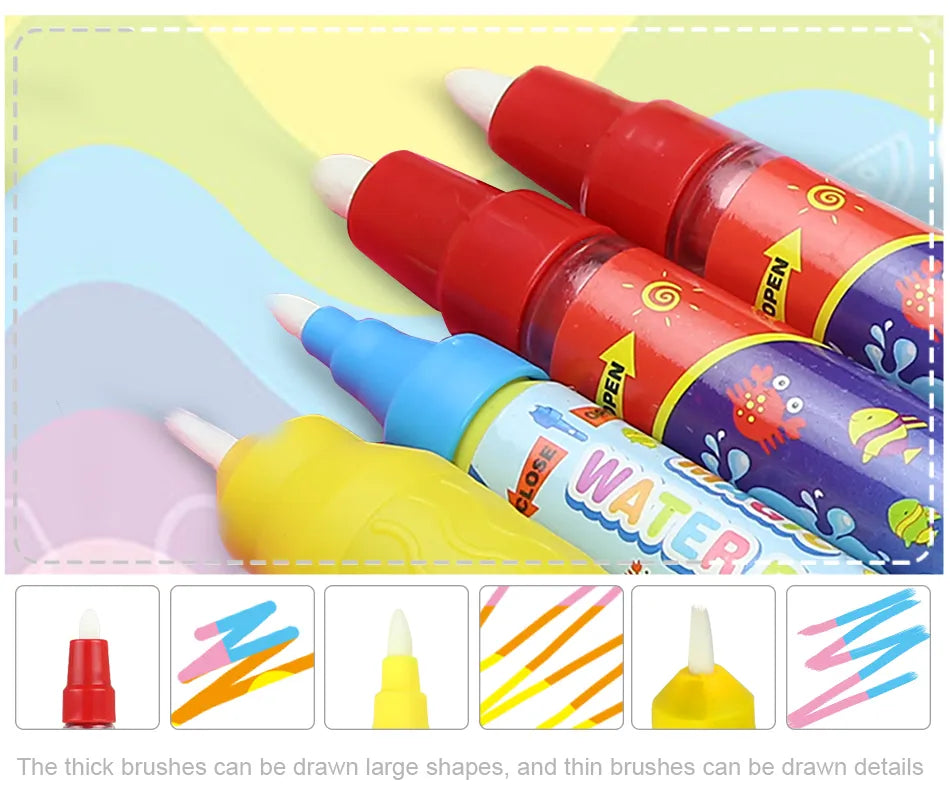 - Reusable and Mess-Free: Simply refill the water pen and draw again and again.