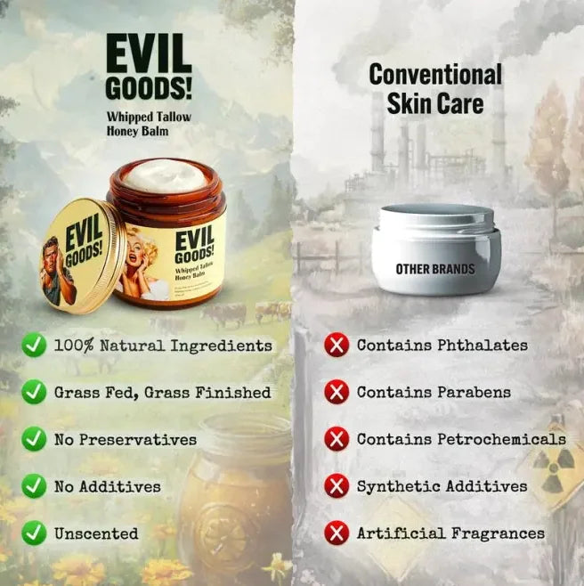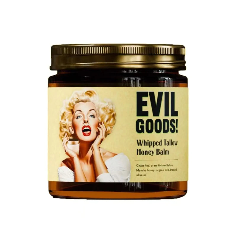 Indulge in the luxurious EVILGOODS Whipped Beef Tallow and Manuka Honey Balm, a versatile balm that serves as a multi-purpose organic solution for your skincare needs.