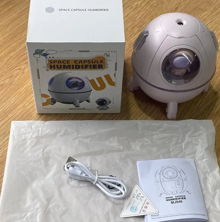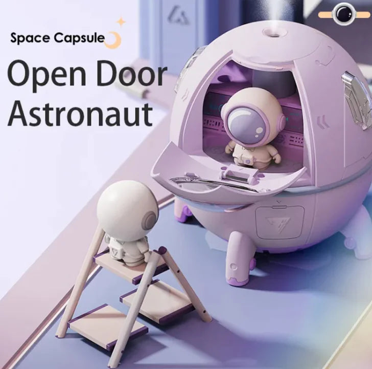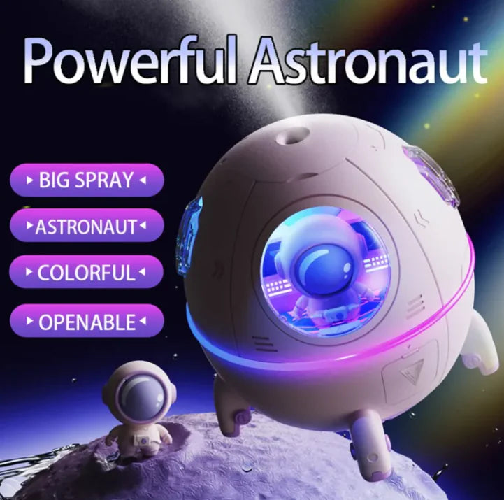 This portable astronaut humidifier features a 220ML water tank and a USB-powered design, making it perfect for desktops, bedrooms, offices, and travel. The colorful LED lights create a soothing ambiance, while the ultrasonic mist technology keeps the air fresh and moisturized. Ideal as a Christmas gift, home décor piece, or personal relaxation tool, this humidifier is both functional and stylish for any space enthusiast.