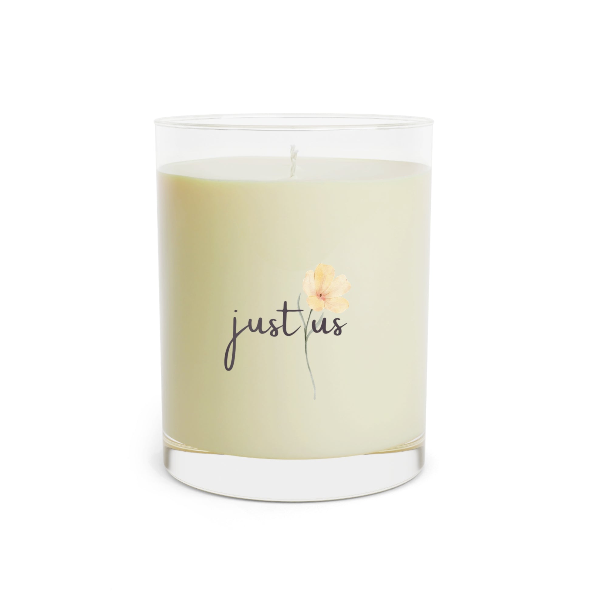 Just Us, “The way GOD intended” - Soy Wax Aromatherapy Scented Candle - 11oz Full Glass with Floral Design