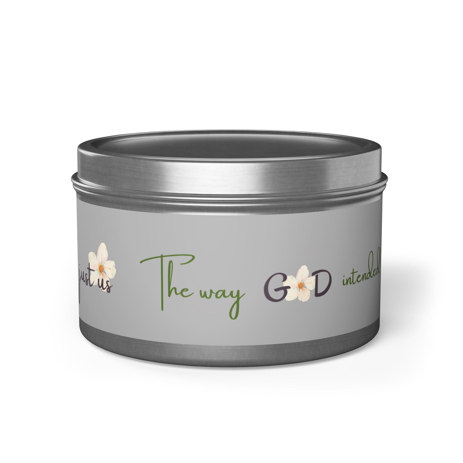 Just Us, “The way GOD intended!” - Tin Candles - Coconut Soy Wax Cozy Home Fragrance for Relaxation & Gift Giving