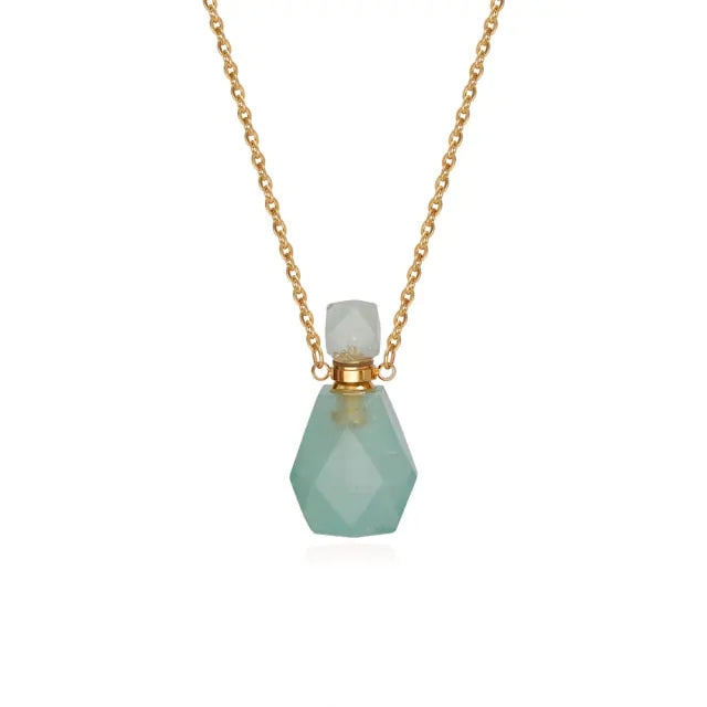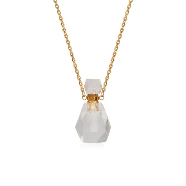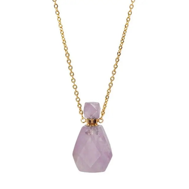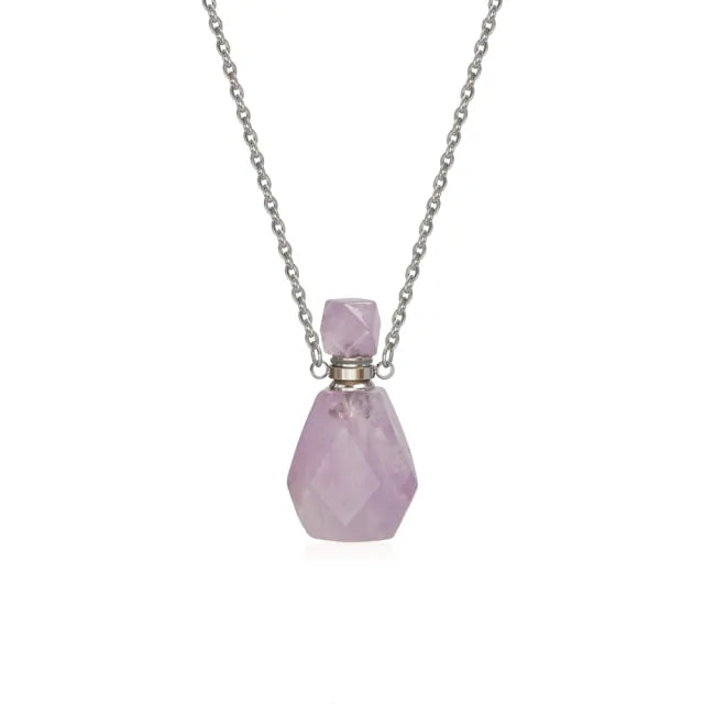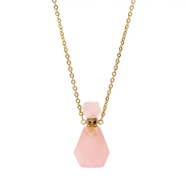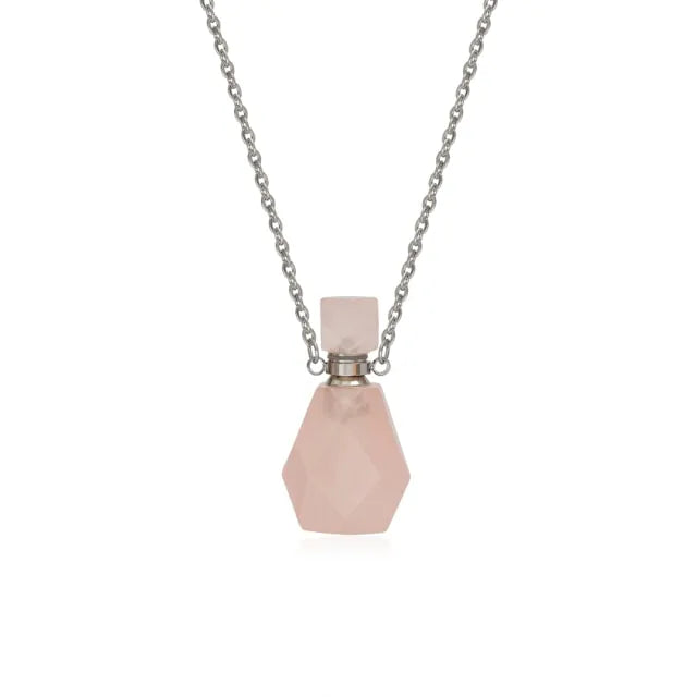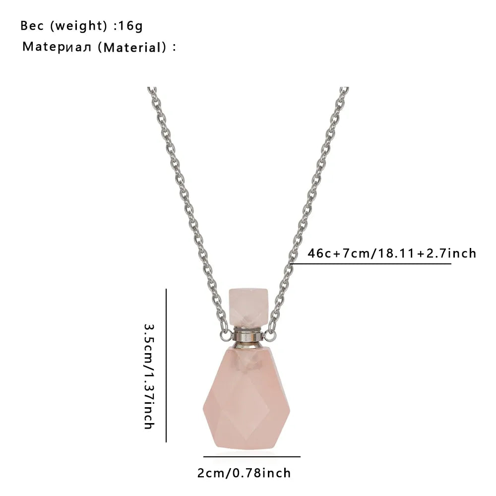 "Introducing our exquisite Natural Stone Essential Oil Bottles, featuring the timeless allure of rose quartz. Crafted from premium, long-lasting materials, these fragrance bottle pendant necklaces boast unparalleled durability and resistance to fading or deformation.