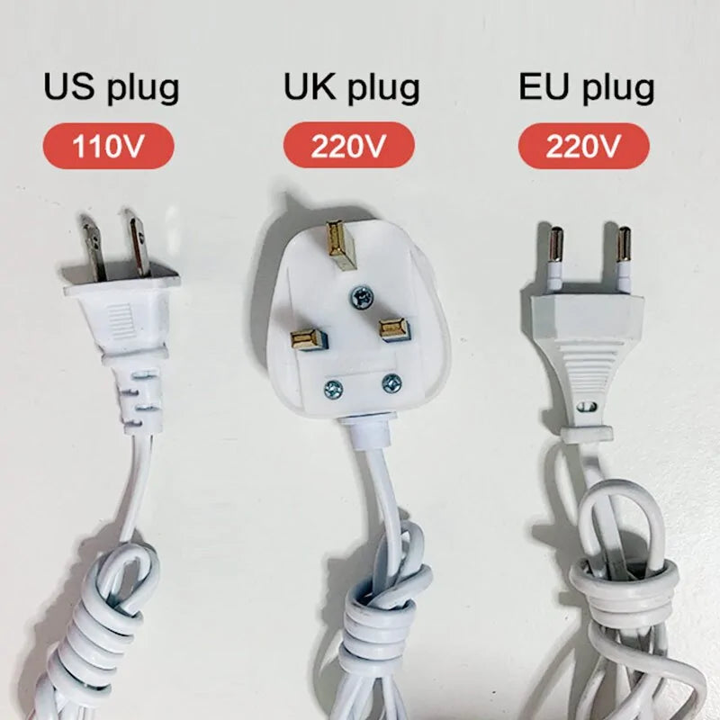 - Voltage Options: EU plug: 220V, UK plug: 220V, US plug: 110V